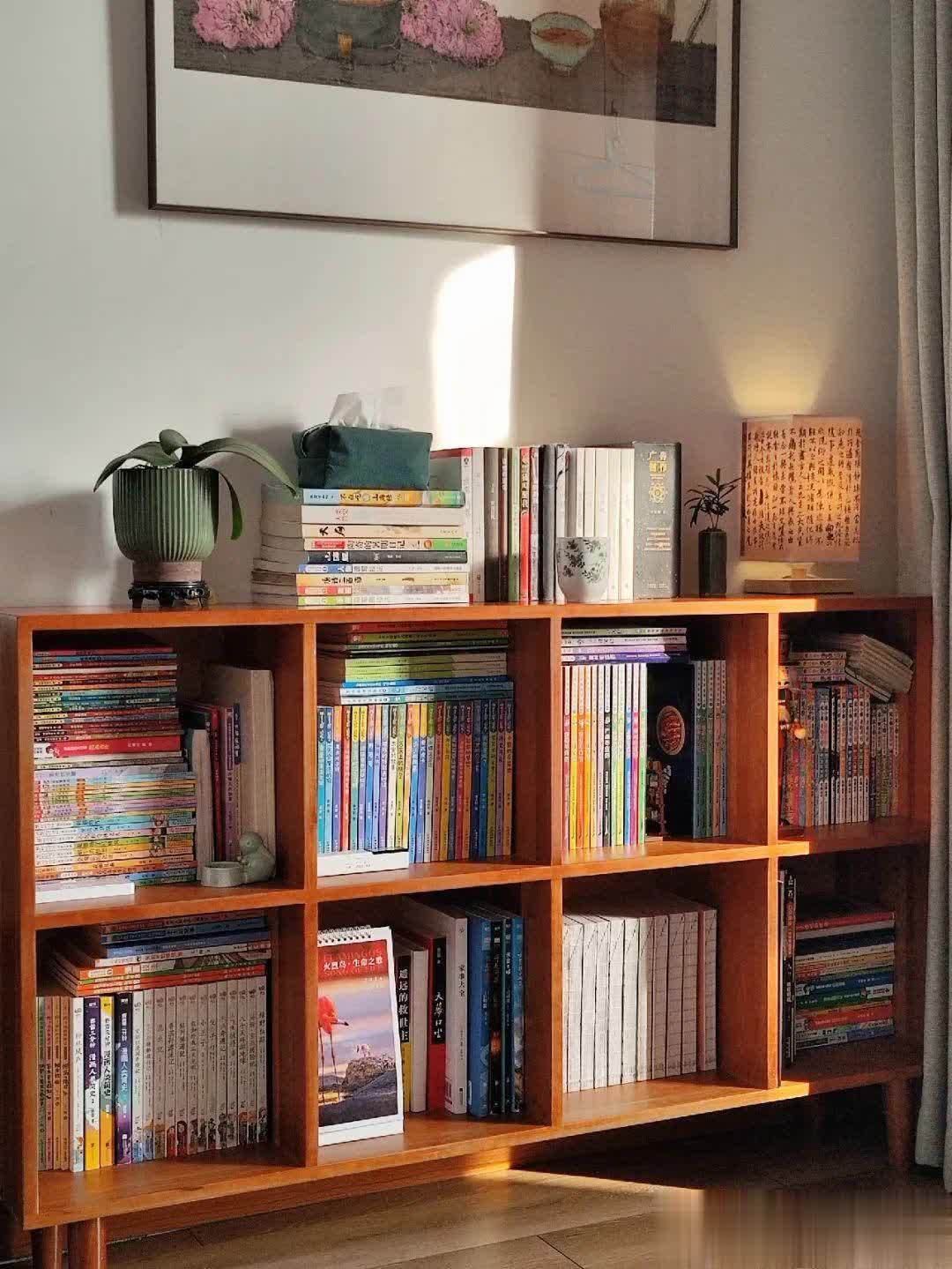 矮矮的书架,不会让整体空间变得逼仄,却可以让家里面的书籍变得井井有条。书架的最上方,还可以当成桌面来使用。